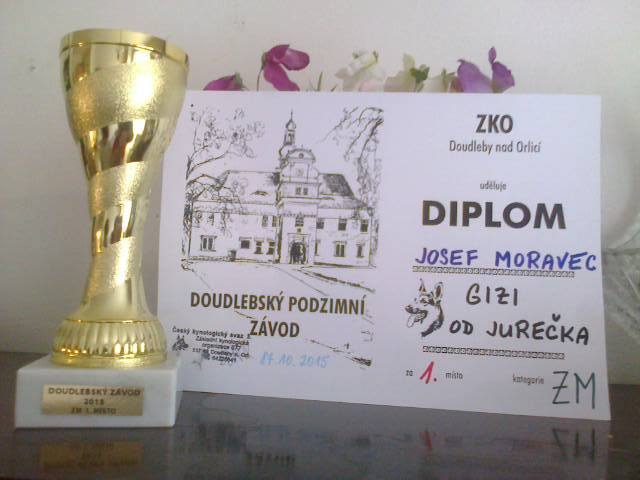 30.4.2016 se Josef Moravec s fenou Gizi od Jurečky účastnil závodu v Dobřichovicích u Prahy(ZKO Lety), kde obsadil první místo ve stopařské části a celkově obsadil 3.místo .